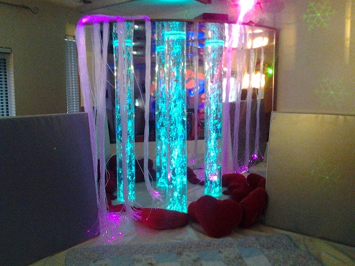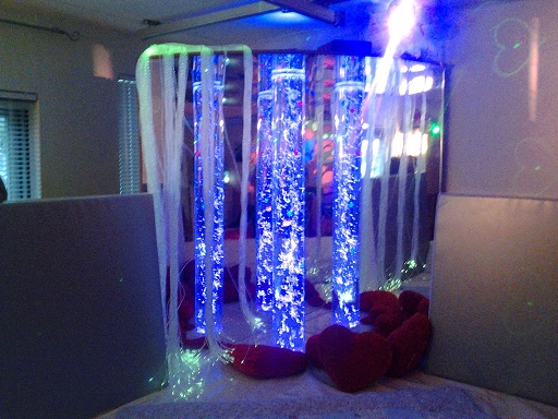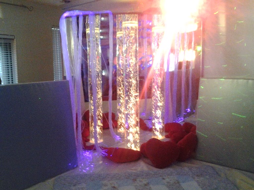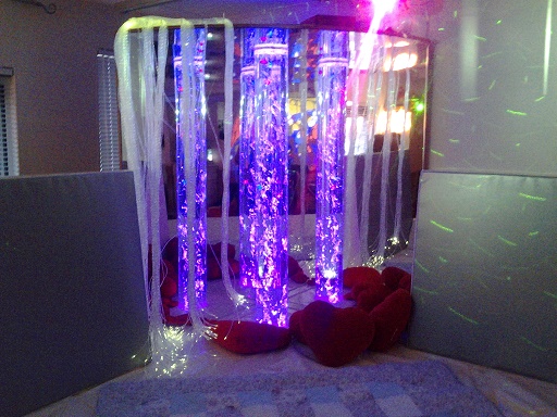 Onlangs werden de snoezelruimte en watertafel geïnstalleerd en dat was reden voor een feestelijke in gebruik name door de cliënten in aanwezigheid van een delegatie van de Rotary clubs, ouders en medewerkers. De cliënten genoten, ieder op zijn of haar eigen manier, van de steeds veranderende kleur van de lichtjes in de waterzuil en alle andere bewegende onderdelen in combinatie met spiegels op de achtergrond. Hun gezichten spraken boekdelen! Wat fijn om zo iets moois in huis te hebben. Voor de watertafel was het nu iets te koud maar ook daar zullen de cliënten veel plezier van hebben.